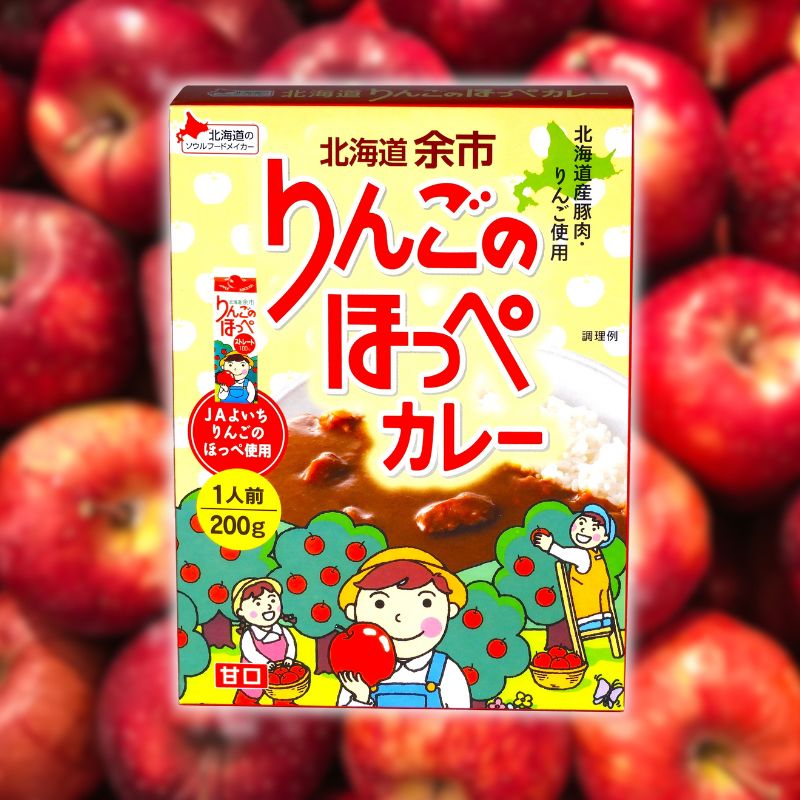 北海道余市産りんご果汁100%ジュース「りんごのほっぺ」に北海道産の豚肉とりんごの果肉を加えた、甘みと旨味の広がるさわやかな味わいのポークカレーです。